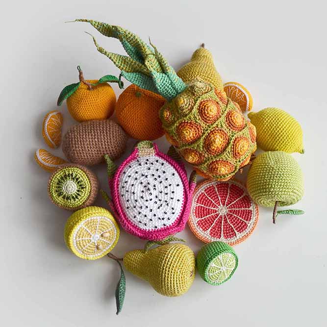 Svetlana Pelyushenko es una artista del croché originaria de Rusia que teje objetos inspirados en la gastronomía, la naturaleza y las constelaciones. Con ello ofrece una mirada fresca y lúdica de la nutrición. | Instagram @pelyushenko_craft