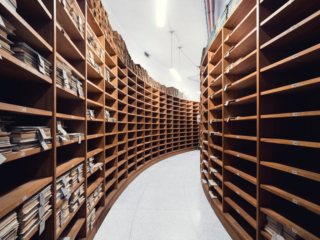 Thibaud Poirier, Stadtbibliothek, Stuttgart, 2011 (Biblioteca de la ciudad de Stuttgart, 2011). De la serie Libraries (Bibliotecas), 2016. Cortesía del artista.