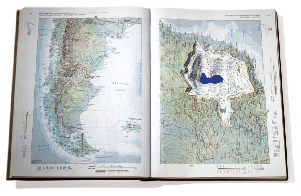 Maya Lin, Atlas Landscape, Rand McNally, The New International Atlas (Paisaje atlas, Rand McNally, El nuevo atlas internacional), 1981, 2006. Fotografía de G.R. Christmas. © James Cabot Ewart. Cortesía de Pace Gallery.