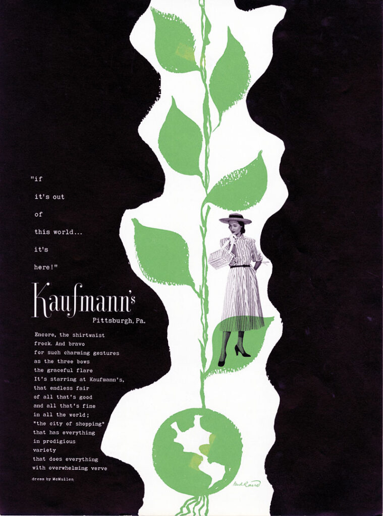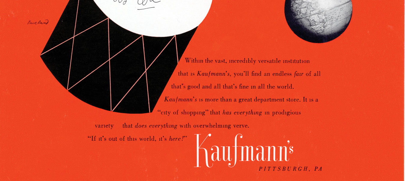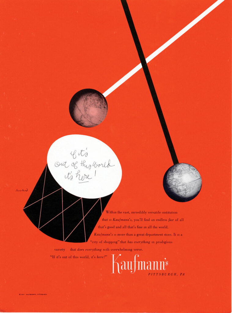 Paul Rand, Kaufmann’s Department Store advertisement, 1947. Cortesía de Richard J. Klein, con el apoyo de la Biblioteca Haas Arts de la Universidad de Yale.