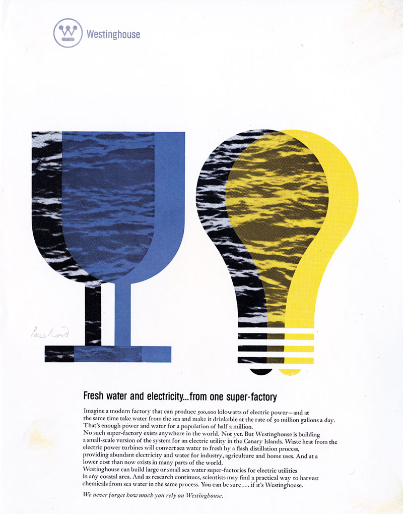 Paul Rand. Agua fresca y electricidad. Publicidad para la marca Westinghouse. Cortesía de Richard J. Klein, con el apoyo de la Biblioteca Haas Arts de la Universidad de Yale.