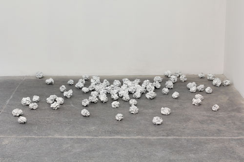 Me acuerdo de De una obra inacabada (The Journal of Julius Rodman), del artista mexicano. Las 85 piezas que creía eran bolas de papel magullado no eran de papel sino aluminio, laca y serigrafía.