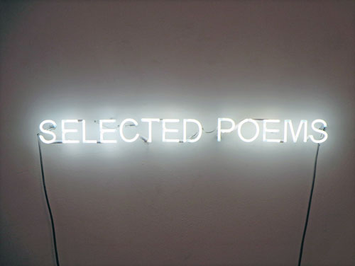 Me acuerdo que la obra Selected Poems me hizo pensar en la espera, un hombre joven acostado en una cama, con un libro de poemas en las manos y la luz del neón entrando por la ventana desde un hotel situado al otro lado de la calle.