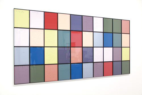 Me acuerdo que cuando vi la instalación de Jorge Méndez Blake, Los espacios en “Especies de espacios” de Georges Perec, ordenada con 40 láminas de colores multiplicando la letra E, me hizo recordar la novela La disparition (El secuestro) del escritor francés, que suprime la letra E, aunque en su traducción al español, la novela omite la A.