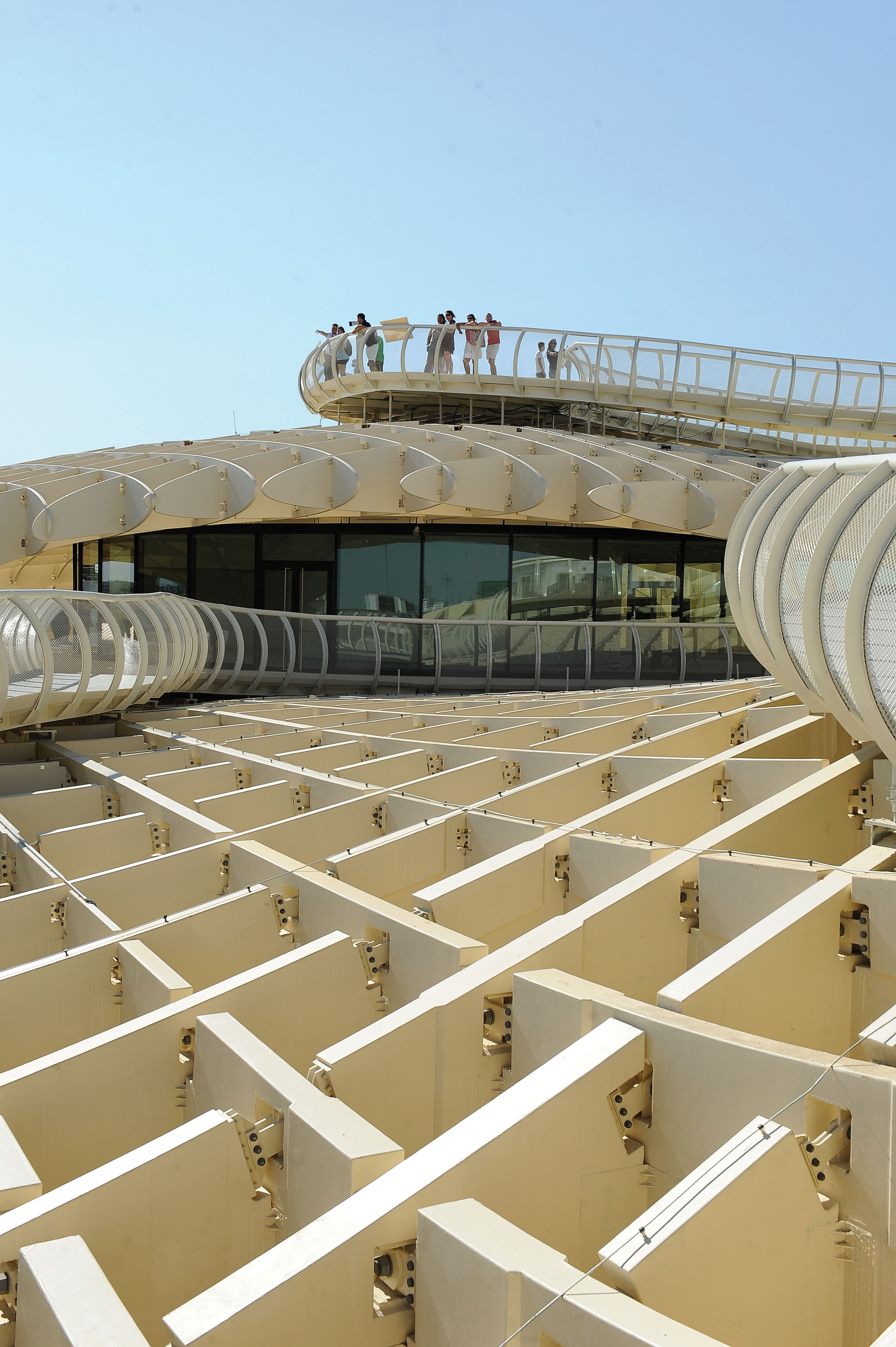 Para proteger la madera de las condiciones climáticas de Sevilla, todos los parasoles están recubiertos de un revestimiento de poliuretano, capaz de resistir el agua y el calor extremo. El resultado es una de las estructuras de madera más amplias del mundo: 150 metros de largo y 28 metros de altura.