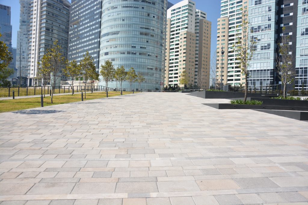 La Mexicana se desarrolla por medio de un eje central de andadores y cuenta con dos accesos: la puerta norte, que en un futuro se unirá con una estación del tren México-Toluca, y la sur, conectada con una plaza pública y accesos vehiculares.
