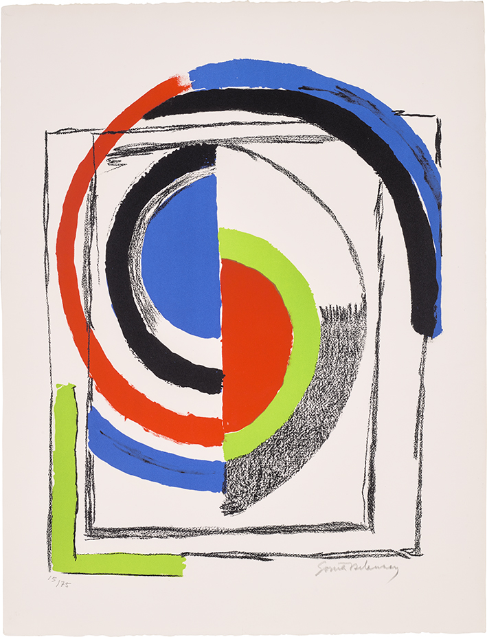 Sonia Delaunay, À Jour (Openwork) [Al día (calado)], circa 1965. Firmado y numerado 15/75 con lápiz. Imagen cortesía de Phillips. www.phillips.com | Instagram @phillipsauction.