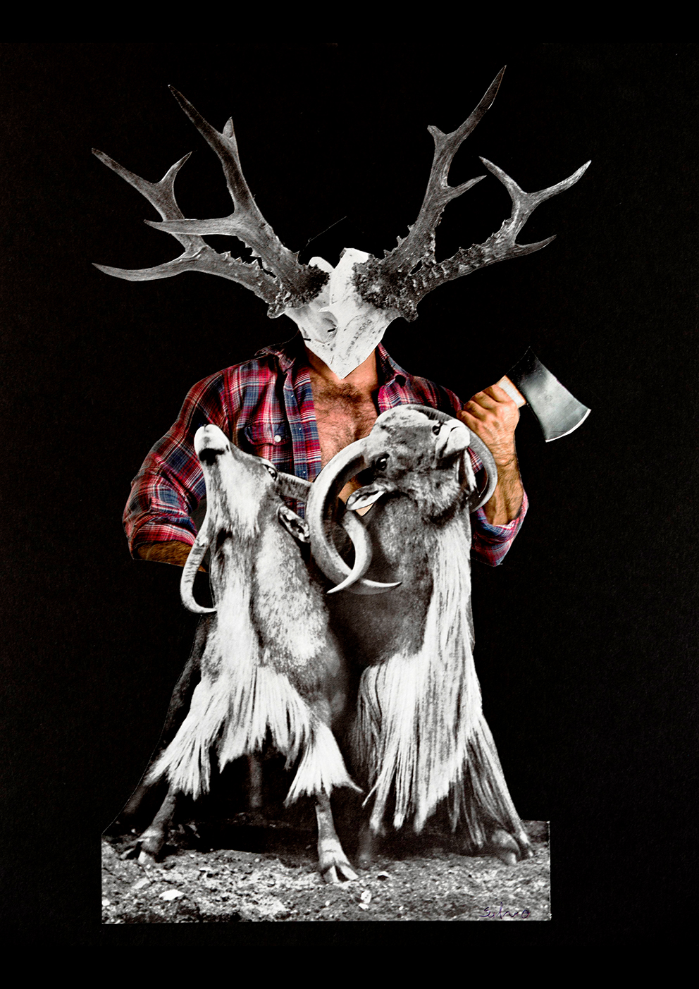 Un tema constante en la obra de Silvio es la deconstrucción de los estereotipos y narrativas en torno a la masculinidad. En The Mask of Masculinity, el rostro de un hombre es sustituido por esos costosos relojes que la publicidad se afana por presentar como símbolo de éxito. Con ello, cuestiona los personajes que los hombres construyen para sí mismos, escondiéndose detrás de objetos que otorgan estatus para encajar con la imagen y el comportamiento esperados por la sociedad. En The Hunting, la identidad del hombre queda oculta de nuevo, esta vez por unos cuernos, para hacer referencia a la palabra “viado” que en Brasil quiere decir ciervo y es, al mismo tiempo, un slang peyorativo para los hombres gays. “El fondo negro refuerza la idea de esconder tu sexualidad y el miedo que experimentaba mi generación al ser gay”, agrega Silvio.